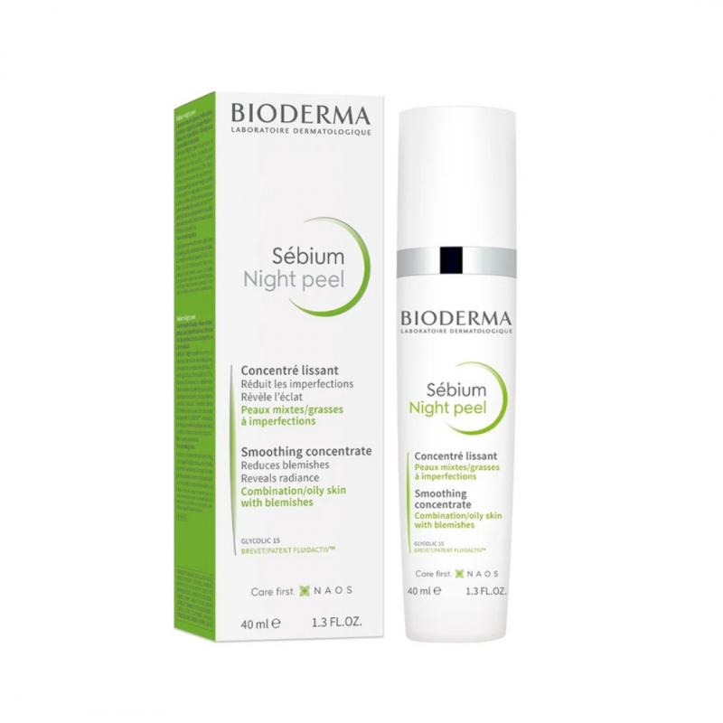 Bioderma Sébium Night Peel est un soin exfoliant nocturne spécialement formulé pour les peaux mixtes à grasses à tendance acnéique. Il agit pendant la nuit pour améliorer la qualité de la peau, lisser le grain de peau et réduire les imperfections. Grâce à une concentration optimale en acide glycolique associée au complexe breveté Fluidactiv™, il favorise le renouvellement cellulaire, désincruste les pores et affine la texture cutanée. Au réveil, la peau est plus lisse, plus nette et visiblement plus uniforme.