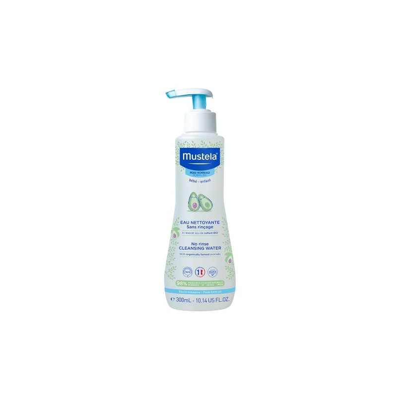 Mustela Eau Nettoyante Sans Rinçage 300 ml est un soin d’hygiène pratique et doux, spécialement formulé pour la peau sensible des nourrissons, bébés et enfants.
