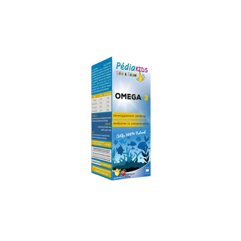Vital PediaKids Oméga‑3 90 ml est un complément alimentaire spécialement formulé pour soutenir le développement cérébral, la concentration et le bon fonctionnement du système nerveux chez l’enfant. Riche en acides gras essentiels Oméga‑3, il contribue également au bien‑être général et au développement cognitif, avec un goût agréable adapté aux enfants.
