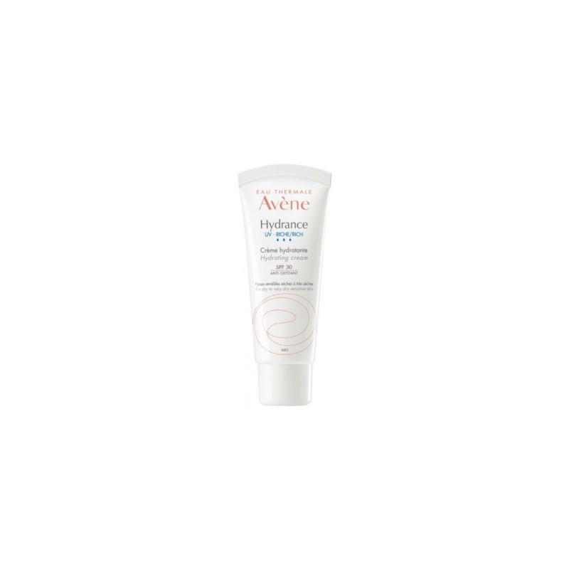 Avène Hydrance UV Riche Crème Hydratante 40 ml est un soin complet destiné à hydrater intensément, protéger et apaiser les peaux sensibles sèches à très sèches, tout en les protégeant des agressions quotidiennes et des rayons UV.