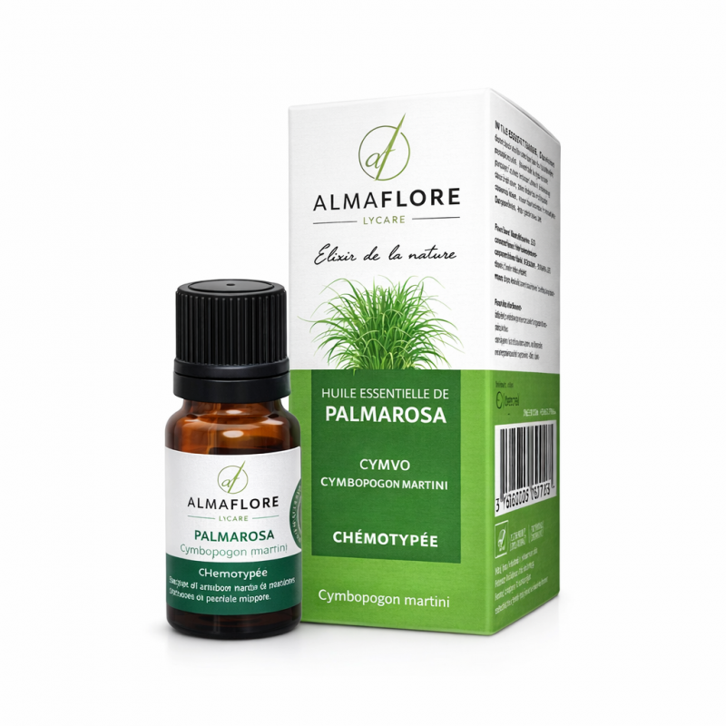 Almaflore Huile Essentielle de Romarin à Cinéole est reconnue en aromathérapie pour ses propriétés stimulantes, purifiantes et respiratoires. Obtenue par distillation des sommités fleuries, cette huile essentielle de haute qualité est traditionnellement utilisée pour soutenir la respiration, favoriser la clarté mentale et accompagner les sensations de fatigue passagère. Polyvalente, elle trouve naturellement sa place dans les routines bien‑être, les diffusions atmosphériques et les usages aromatiques ciblés, dans le respect des bonnes pratiques.