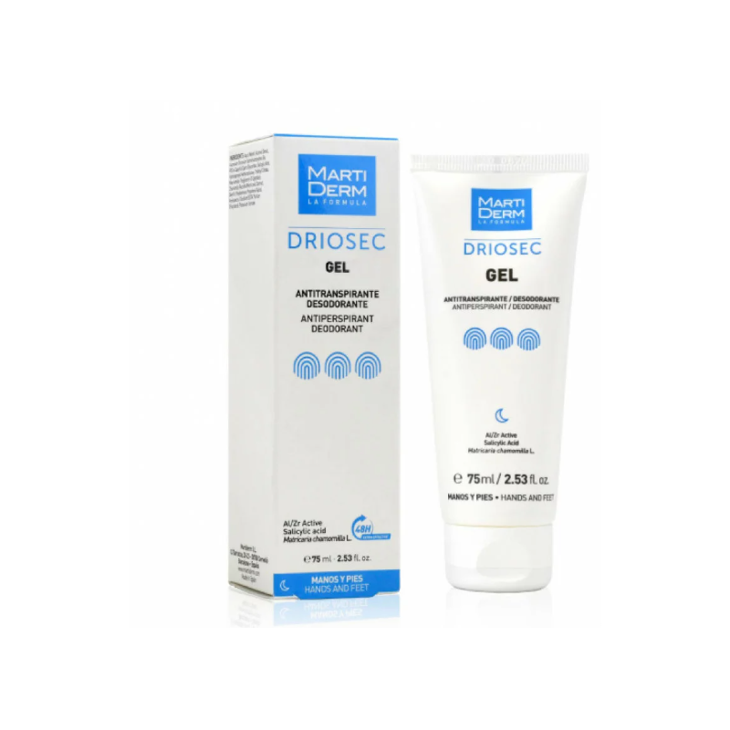 Driosec Gel Anti‑transpirant MartiDerm aide à réguler la transpiration excessive au niveau des zones concernées (aisselles, mains, pieds, plis cutanés). Il agit localement pour maintenir une sensation de peau sèche et confortable.