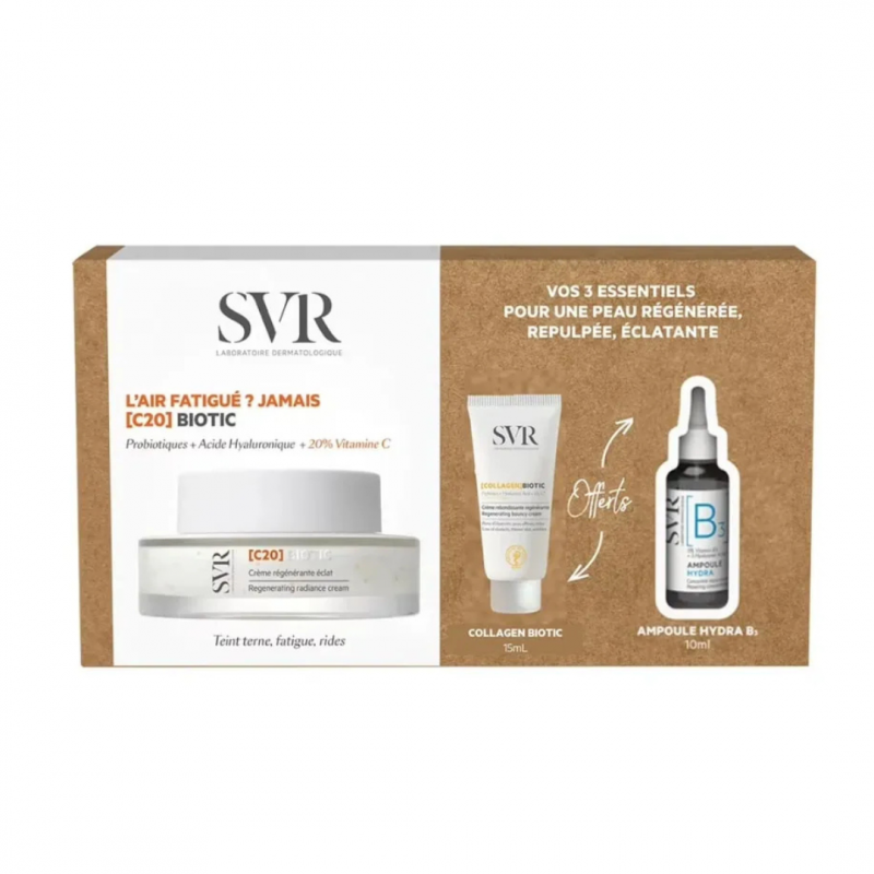 Le set SVR C20 Biotic + Collagen + Ampoule Hydra offre ainsi une approche globale pour retrouver une peau plus lumineuse, ferme et confortable.