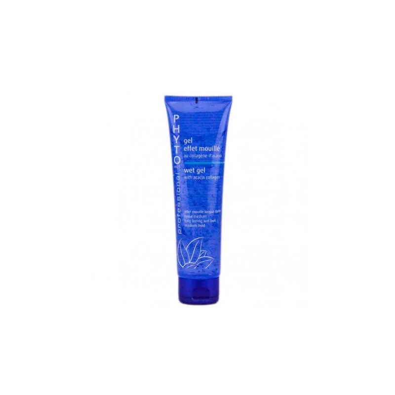 Phyto Gel Effet Mouillé Tous Cheveux 150 ml est un gel coiffant performant qui permet de créer des coiffures structurées avec un effet mouillé élégant et longue tenue.