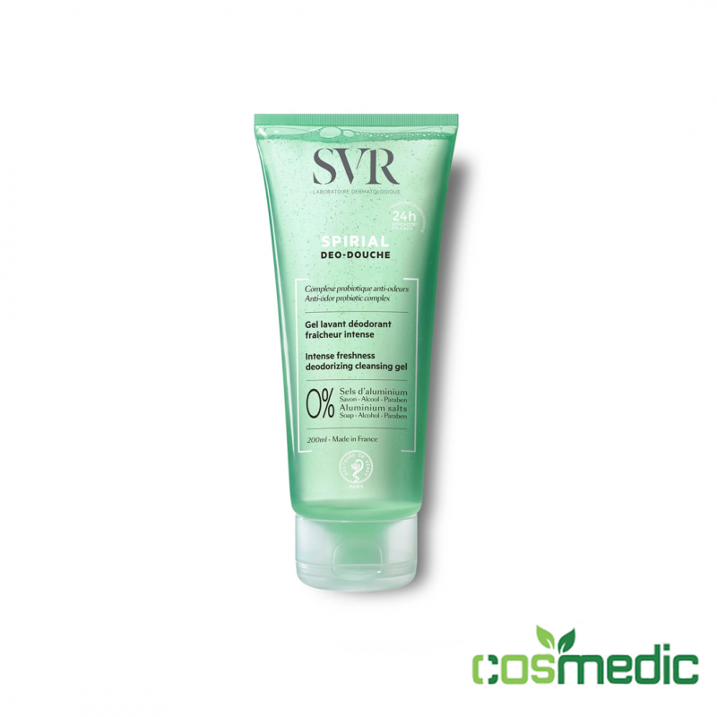SVR Spirial Déo‑Douche 200 ml est le soin idéal pour une hygiène quotidienne efficace, fraîche et respectueuse de la peau, tout en aidant à lutter contre les odeurs liées à la transpiration.