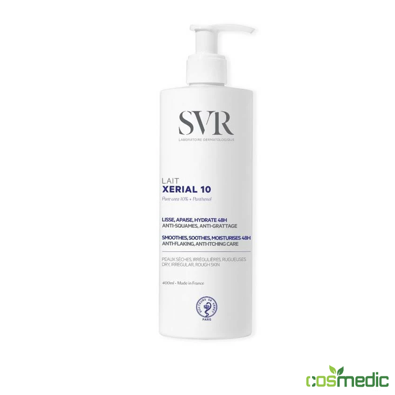 SVR Xérial 10 Lait Corps 400 ml est un lait hydratant dermatologique conçu pour répondre aux besoins des peaux sèches à très sèches, sujettes aux sensations de tiraillements et aux irrégularités cutanées.