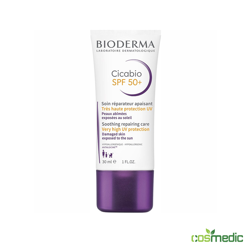 Bioderma Cicabio SPF 50+ est un soin dermocosmétique expert destiné à protéger et réparer les peaux fragilisées tout en leur offrant une très haute protection solaire. Il répond aux besoins spécifiques des peaux agressées par des actes dermatologiques superficiels, des irritations cutanées ou des agressions extérieures, nécessitant une protection solaire renforcée.